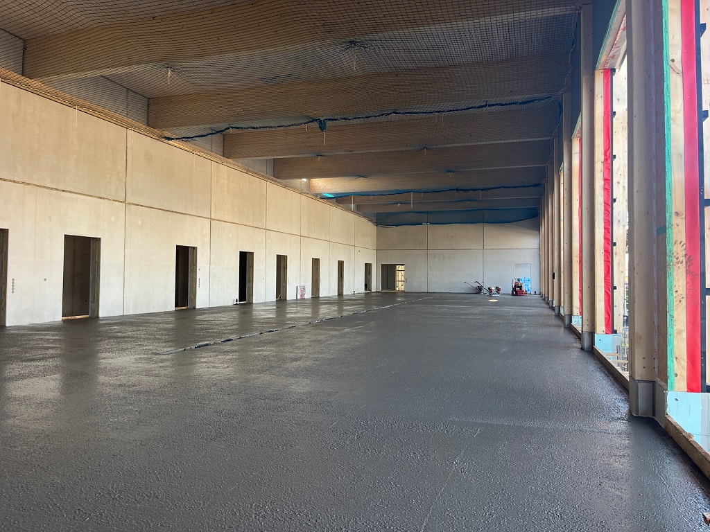 Zum Abschluss des Jahres möchten wir nochmals ein Update unseres Bautagebuches geben. Nachdem im Dezember im Obergeschoss die Betonwände gestellt wurden, kann man dort bereits die Umrisse einiger Räume erkennen. Unser Abt. Kommandant Dennis wagte schon mal ein Blick von der Küche in den Unterrichtsraum. In der letzten Woche vor Weihnachten wurden die Holz-Stützen auf der Hallenseite gestellt und die Holzbinder eingebaut. Wir freuen uns über den Baufortschritt an unserem neuen Rettungszentrum und berichten Euch auch im neuen Jahr 2026 an dieser Stelle.