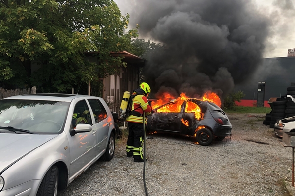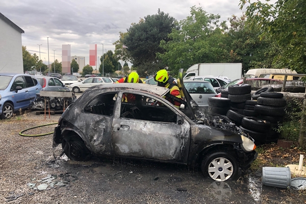 Am Montag, den 28. September 2020 wurde die Feuerwehr Abteilung Herbolzheim um 17:54 Uhr durch die Leitstelle Emmendingen zu einem PKW Brand in die Stockfeldstraße alarmiert. Beim Eintreffen des Einsatzleiters brannte ein PKW im Außenbereich einer Werkstatt im Vollbrand. Mit Hilfe von zwei Feuerlöschern wurde der Brand versucht zu löschen um eine weitere Ausbreitung auf die angrenzenden Container zu verhindern. Unter Atemschutz ging dann ein Trupp mit der Schnellangriffleitung zur Brandbekämpfung vor: Nach wenigen Minuten war der Brand gelöscht. Angrenzende Bereiche und das Innere des Containers wurden mit der Wärmebildkamera kontrolliert.