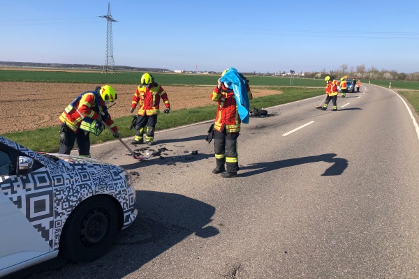 Am Freitag, den 02. April, wurde die Abteilung Herbolzheim und die Feuerwehr Ringsheim um 15:23 Uhr zur Absicherung nach einem Verkehrsunfall auf die B3 Richtung Ringsheim alarmiert. Auf freier Strecke kam es zu einem Unfall mit drei beteiligten PKW. Zur vollständigen Absperrung der B3 beim Sportplatz, der Landsiedlung und in Ringsheim forderte die Polizei die Feuerwehren an. Glücklicherweise gab es nur Blechschaden und keine verletzten Personen. Die Trümmerteile waren auf weiter Strecke verteilt und ein Fahrzeug landete durch die Kollision im Acker. Nach der Unfallaufnahme durch die Polizei wurden ausgelaufene Betriebsstoffe aufgenommen und die Fahrbahn durch die Feuerwehr Herbolzheim gereinigt.