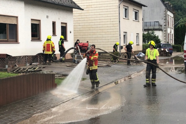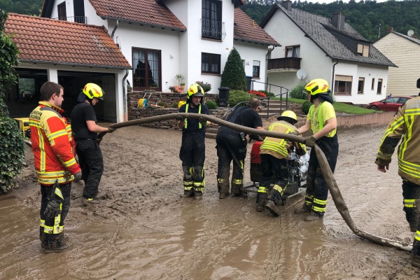 Am Donnerstag, den 15.07.2021 um 19:25 Uhr wurde der überörtliche Zug Hochwasserschutz des Landkreises Emmendingen in die Bundeswehrkaserne nach Hermeskeil alarmiert. Bereits um 21:30 Uhr machten sich dann 19 Kameraden aus Herbolzheim, Mundingen und Kenzingen auf den Weg nach Rheinland Pfalz In der Kaserne wurde übernachtet bevor es am nächsten Tag nach Ralingen an die Auer ging. Dort wurden durch uns 11 Keller leer gepumpt welche vollständig mit Wasser gefüllt waren. Zwei Tragkraftspritzen und 8 Tauchpumpen kamen dabei zum Einsatz. Weiterhin musste ein aufgeschwemmter Gastank frei gelegt und gesichert werden. Während dem Auspumpen der Keller wurden die Straße vom Schlamm gereinigt. Im gleichen Ort war der Hochwasserschutzzug des Landkreises Ortenau aus Kehl im Einsatz. Am Samstag wurde unsere Einheit in den Bereitstellungsraum an den Nürburgring in die Eifel verlegt. Um 16 Uhr konnte von dort die Rückfahrt nach Herbolzheim erfolgen.