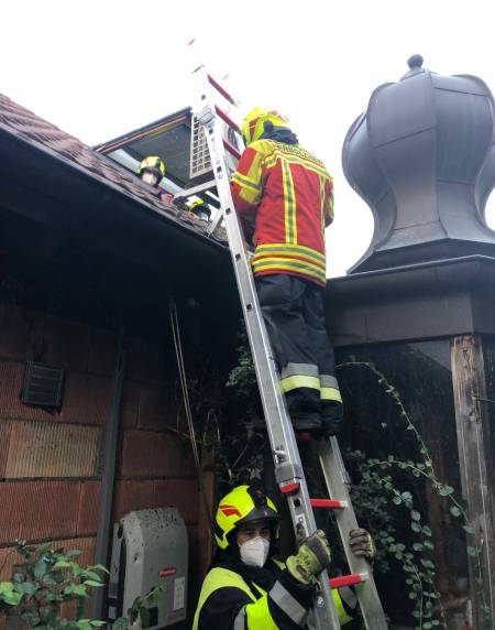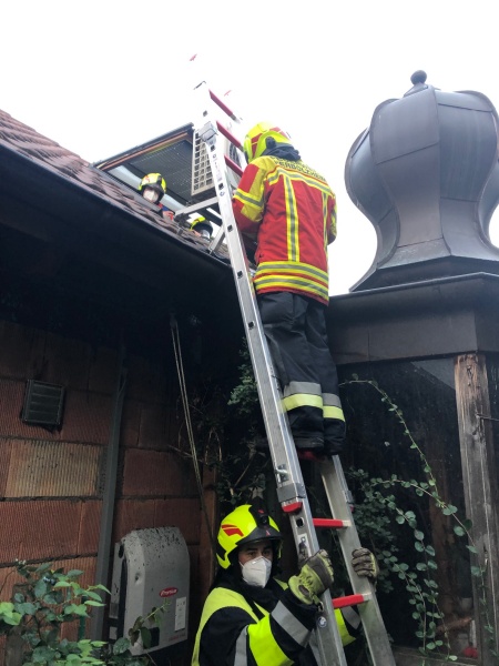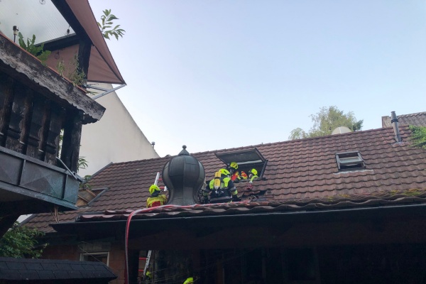 Am Mittwoch, den 21.07. um 5:40 Uhr wurde die Feuerwehr Abteilung Herbolzheim und die Einsatzeinheit Wagenstadt/Tutschfelden zu einem Gebäudebrand in die Maria Sand Straße alarmiert. Beim Eintreffen an der Einsatzstelle brannte es im hinteren Gebäude im Dachbereich. Ein Bewohner unternahm bereits Löschversuche mit dem Gartenschlauch auf dem, Dach und dämmte somit das Feuer ein. Ein Trupp der Feuerwehr ging sofort zu Betreuung und Rettung einer Person in das verrauchte Erdgeschoß vor. Zwei weitere Trupps übernahmen die Brandbekämpfung im Dachbereich. Mit einem Überdrucklüfter wurde umgehend das Erdgeschoss entraucht. Zur vollständigen Brandbekämpfung mussten großflächig Ziegel und Isolierung entfernt werden. Durch den schnellen Einsatz des Bewohners und der Feuerwehr konnte der Brand schnell unter Kontrolle gebracht und eine weitere Ausbreitung verhindert werden. Insgesamt 4 Personen mussten mit Verdacht auf Rauchgasinhalation vom Rettungsdienst betreut und zur Kontrolle in Krankenhäuser transportiert werden. Für eine Person musste hierzu ein spezielles Rettungsmittel aus Bad Krozingen angefordert werden. Die Zusammenarbeit der Hilfsorganisationen vor Ort wurde über die Führungsgruppe im ELW koordiniert und war hervorragend. Nach abschließender Kontrolle mit der Wärmebildkamera wurde die Einsatzstelle an die Polizei übergeben.