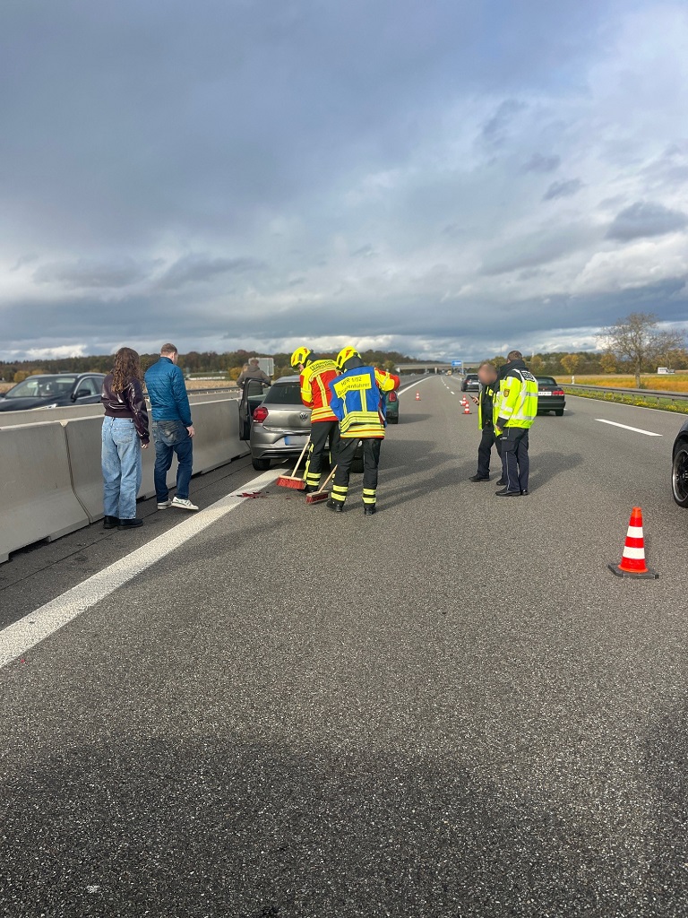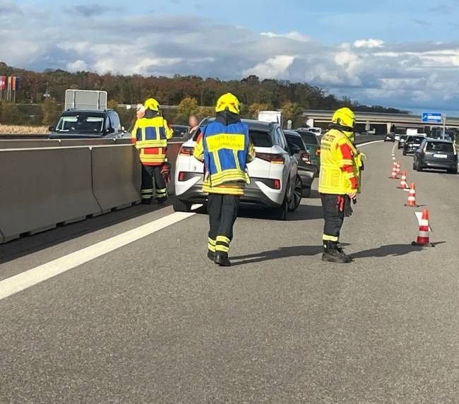 Am Sonntag, den 26.10.2025 wurde die Abt. Herbolzheim um 14.19 Uhr zur Absicherung eines Verkehrsunfalles auf die BAB5 Richtung Norden alarmiert. Kurz vor der Anschlussstelle Rust standen drei PKW auf dem linken Fahrstreifen. Glücklicherweise wurden bei dem Auffahrunfall keine Personen verletzt. Die Unfallstelle wurde durch die Feuerwehr abgesichert und die Fahrbahn gereinigt. Nach Übergabe an die Polizei konnte die Feuerwehr Herbolzheim wieder einrücken.