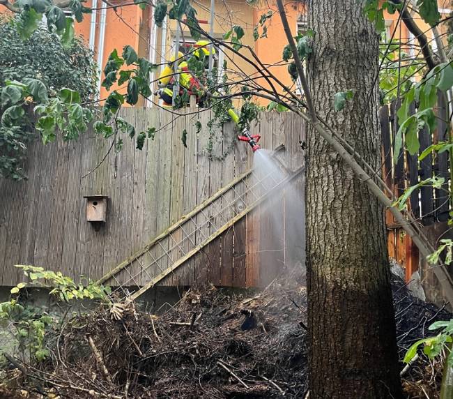 Am Samstag, den 1. November wurde die FFW Abt. Herbolzheim um 15.55 Uhr zu einem Heckenbrand im Bereich Leinenwebergässle alarmiert. Beim Eintreffen der Feuerwehr brannte dort ein Komposthaufen mit Ästen und Laub. Der Anwohner und die Nachbarn hatten bereits mit Löschversuchen mit Eimer und Gartenschlauch begonnen. Über eine Steckleiter wurde ein C-Rohr vorgenommen und der Brand vollständig gelöscht. Danach wurde mit Gabeln der Haufen auseinander gezogen und mit der Wärmebildkamera kontrolliert. Nach vollständigem Ablöschen des Komposthaufens konnte die Feuerwehr wieder einrücken. Durch den schnellen Einsatz des Anwohner, der Nachbarn und der Feuerwehr konnte ein größerer Brand verhindert werden.