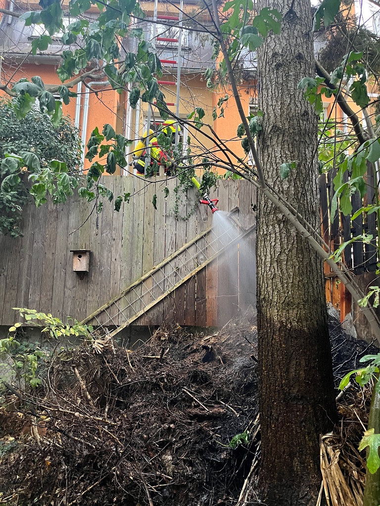 Am Samstag, den 1. November wurde die FFW Abt. Herbolzheim um 15.55 Uhr zu einem Heckenbrand im Bereich Leinenwebergässle alarmiert. Beim Eintreffen der Feuerwehr brannte dort ein Komposthaufen mit Ästen und Laub. Der Anwohner und die Nachbarn hatten bereits mit Löschversuchen mit Eimer und Gartenschlauch begonnen. Über eine Steckleiter wurde ein C-Rohr vorgenommen und der Brand vollständig gelöscht. Danach wurde mit Gabeln der Haufen auseinander gezogen und mit der Wärmebildkamera kontrolliert. Nach vollständigem Ablöschen des Komposthaufens konnte die Feuerwehr wieder einrücken. Durch den schnellen Einsatz des Anwohner, der Nachbarn und der Feuerwehr konnte ein größerer Brand verhindert werden.