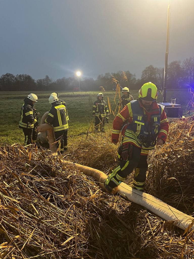 Nachdem sich die Einsatzkräfte durch die stark aufgeweichten Wiesen Zugang zur Einsatzstelle verschafft hatten, begannen sofort Rettungsmaßnahmen durch die Wasserretter aus Rheinhausen. Im Zuge dieser Maßnahmen konnte eine leblose Person aus dem Fahrzeug befreit werden. Sofort eingeleitete Reanimationsmaßnahmen blieben leider ohne Erfolg, die Person verstarb an der Einsatzstelle. Mit Hilfe des Rüstwagens wurde das Fahrzeug anschließend aus dem Wasser gezogen. Die Führungsgruppe Herbolzheim unterstützte mit dem ELW den Einsatzleiter und war Anlaufstelle für die beteiligten Einsatzkräfte. Zur Betreuung der Angehörigen und der eingesetzten Einsatzkräfte waren Fachkräfte der Psychosozialen Notfallversorgung des Landkreises im Einsatz. Im Gerätehaus Rheinhausen fand eine gemeinsame Nachbesprechung der Einsatzkräfte statt. Zurück im Gerätehaus gab es anschließend noch umfangreiche Reinigungsarbeiten an den Gerätschaften und Fahrzeugen.