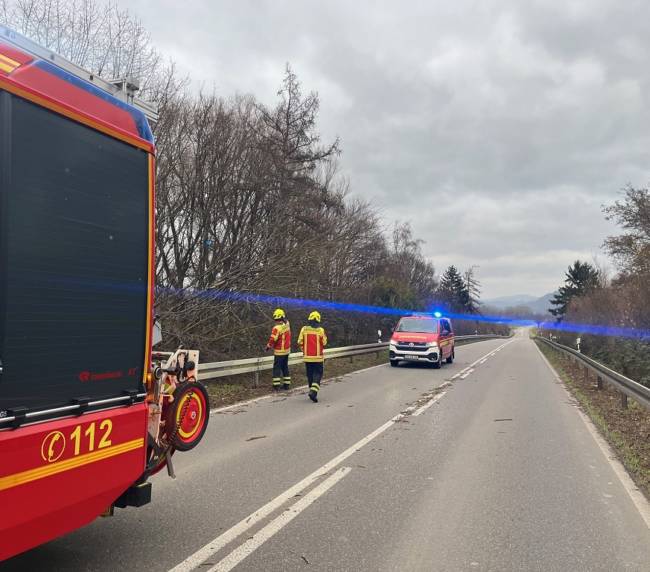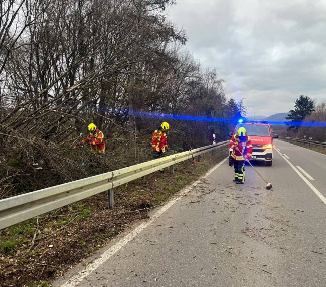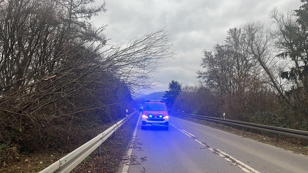 Am Mittwoch, den 24. Dezember wurde die FFW Abt. Herbolzheim um 15.12 Uhr zu einem umgestürzten Baum auf die Südendstrasse zwischen alter und neuer B3 alarmiert. Aufgrund eines Sturmes stürzte ein Baum auf der Zufahrt zur Brücke um und ragte mit mehreren Ästen in die Fahrbahn. Mit Hilfe einer Säge wurden die Äste entfernt und zur Seite gelegt. Anschließend wurde die Fahrbahn gereinigt.