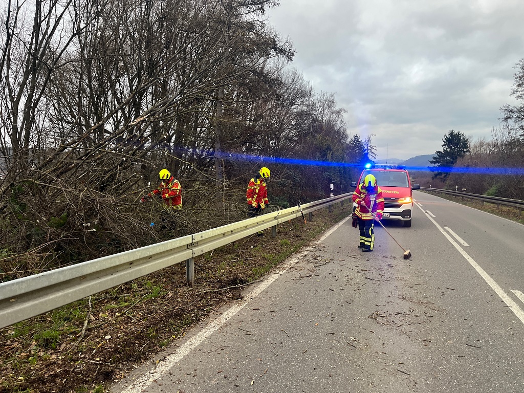 Am Mittwoch, den 24. Dezember wurde die FFW Abt. Herbolzheim um 15.12 Uhr zu einem umgestürzten Baum auf die Südendstrasse zwischen alter und neuer B3 alarmiert. Aufgrund eines Sturmes stürzte ein Baum auf der Zufahrt zur Brücke um und ragte mit mehreren Ästen in die Fahrbahn. Mit Hilfe einer Säge wurden die Äste entfernt und zur Seite gelegt. Anschließend wurde die Fahrbahn gereinigt.