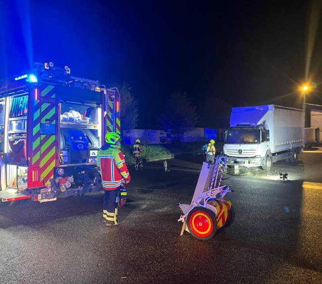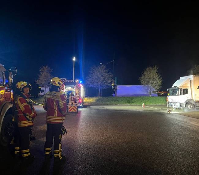 Die Feuerwehr Herbolzheim und die Abt. Wagenstadt wurden am Freitag, den 27.03. um 1.29 Uhr zu einem LKW Brand in die Breisgauallee alarmiert. Beim Eintreffen der Feuerwehr brannte ein LKW auf einem Parkplatz im Bereich des Motorraumes. Mit Hilfe eines Schaumlöschers und der Schnellangriffsleitung war der Brand schnell gelöscht. Die Abt. Wagenstadt konnte nach kurzer Zeit wieder einrücken. Die Nachlöscharbeiten zogen sich eine Weile hin. Mehrfach wurde Motorbereich abgelöscht und kontrolliert. Um das Fahrerhaus kippen zu können wurde der betroffene Unternehmer verständigt der dann vor Ort kam.
